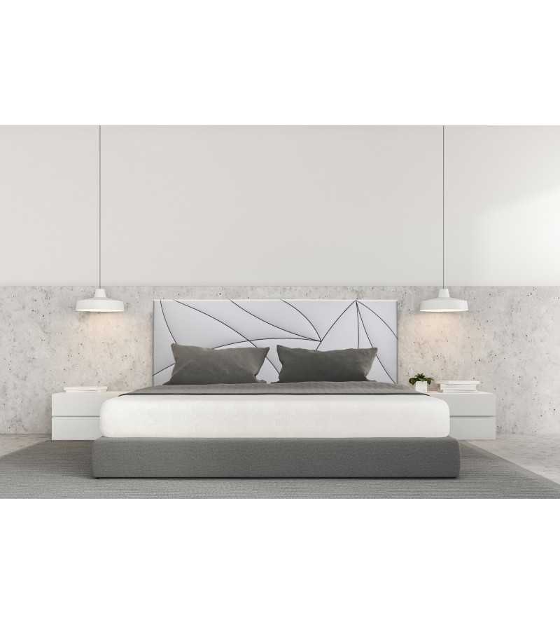Cabecero cama con motivo bordado geométrico.